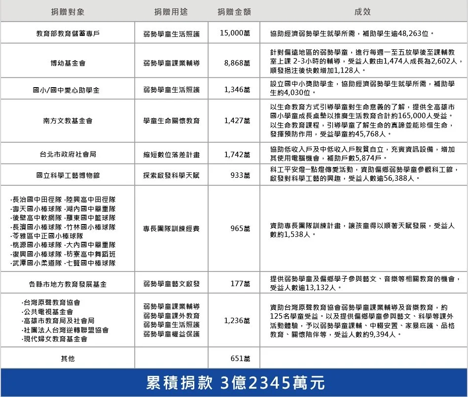 教育部的「教育儲蓄戶」建立理念與運作方式,符合順發在公益捐款評估的重要原則。於是,順發決定以此平台,作為主要公益傳愛媒介: